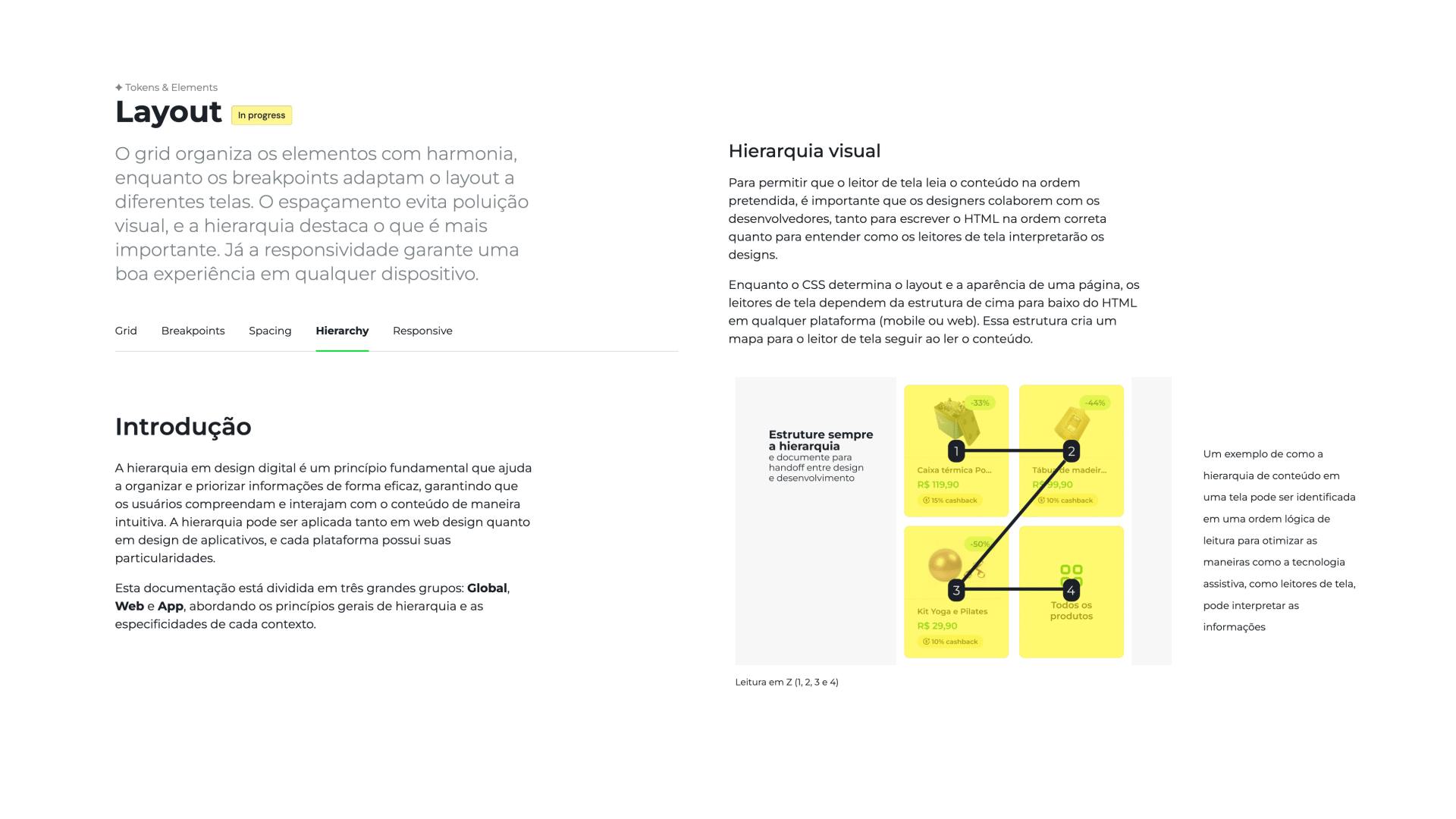 No desenvolvimento do Design System, minha primeira tarefa foi criar todos os tokens de design. Esses tokens são fundamentais para garantir uniformidade visual e consistência em todos os produtos.
